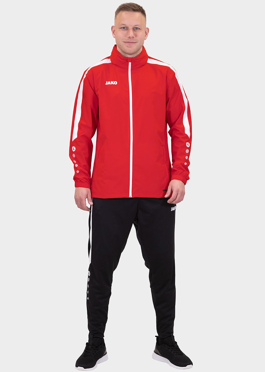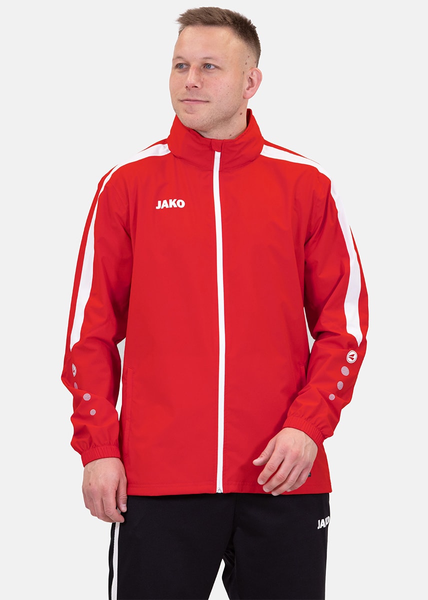 Für ein angenehmes Körperklima in der JAKO Allwetterjacke Power sorgen die wasserabweisenden Funktionsmaterialien, die gemeinsam mit getapten Hauptnähten vor unerwünschter Nässe schützen. Die Allwetterjacke Power besteht aus 100% Polyester und auch an stürmischen Tagen hält sie dank der Laminierung des Obermaterials stand.